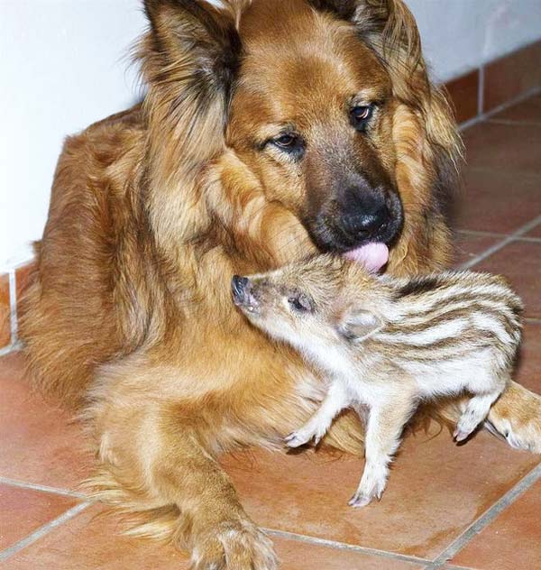 Η Laska είναι μια ιδιαίτερη περίπτωση θηλυκού σκύλου, που ανέλαβε να μεγαλώσει δύο μωρά αγριογούρουνα που βρέθηκαν ετοιμοθάνατα στη φάρμα της οικογένειας, λίγο πιο έξω από το Αμβούργο της Γερμανίας. «Τα μωρά ήταν εντελώς παγωμένα όταν τα έφερα στο σπίτι και ήμουν σίγουρος ότι θα πέθαιναν. Όμως η Laska ήξερα καλά τι να κάνει. Έμενε ξάγρυπνη όλη νύχτα για να τα ζεσταίνει, τα καθάριζε με τη γλώσσα της και έπαιζε μαζί τους. Είναι μια αξιοθαύμαστη μητέρα!», λέει ο κ. Heckers, ιδιοκτήτης της Laska.