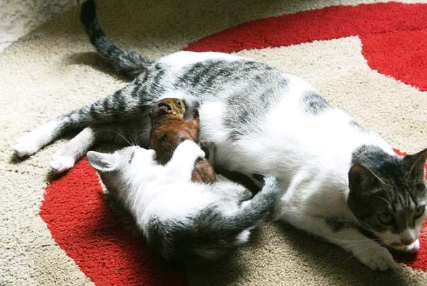 H Tita είναι μια απίθανη γάτα που ζει στην Κολομβία και ανήκει στον Ruben Gaviria, ο οποίος πρέπει να είναι πολύ περήφανος γι’ αυτήν. Ο λόγος; Ανέλαβε να θηλάζει έναν σκίουρο που βρέθηκε τραυματισμένος σε ένα πάρκο κοντά στο σπίτι της οικογένειας παράλληλα με το γατάκι της. Όσο για το παιχνίδι; «Και οι τρεις μαζί aπολαμβάνουν μοναδικές στιγμές», λέει ο Ruben.