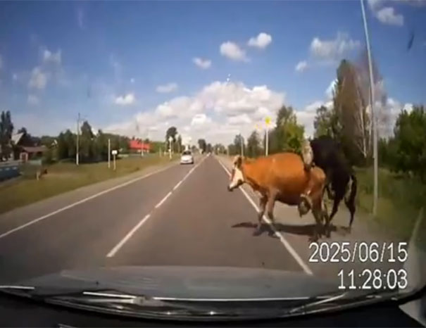 Κι εκεί που νόμιζες ότι τα έχεις δει όλα στους δρόμους της Ρωσίας, ξαφνικά πετάγονται στη μέση του δρόμου μια αγελάδα με τον ταύρο της σε… τρελά κέφια.