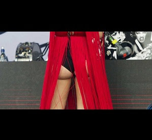 Από μέσα φορούσε το μαγιό της και κάθε λίγο και λιγάκι γύρναγε τα.. οπίσθια στο κοινό.. για να τους αποδείξει πως δεν έχει ίχνος κυτταρίτιδας..