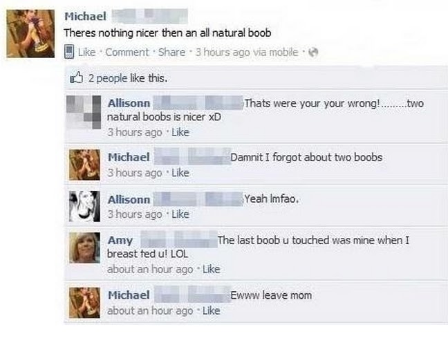 Η μητέρα του ωστόσο τον έβαλε στη θέση του, σχολιάζοντας ότι ''το τελευταίο στhθoς που άγγιξες ήταν το δικό μου, όταν θhλαζες''!
