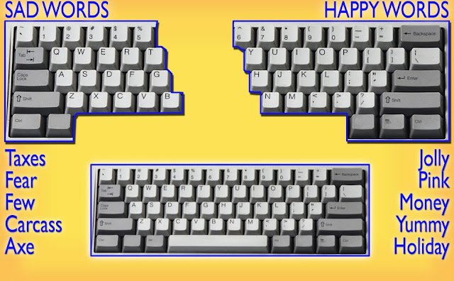 Οι επιστήμονες ανακάλυψαν ότι όσοι χρησιμοποιούν πληκτρολόγιο QWERTY αντιδρούν πιο θετικά στις λέξεις που γράφονται με το δεξί χέρι...Έτσι, για παράδειγμα, πληκτρολογώντας το γνωστό «LOL» αισθανόμαστε καλύτερα! Αντίθετα, οι ερευνητές ανακάλυψαν ότι οι λέξεις των οποίων τα γράμματα είναι συγκεντρωμένα στην αριστερή πλευρά του πληκτρολογίου, μας προκαλούν αρνητικά συναισθήματα. Ως παράδειγμα αναφέρουν την αγγλική λέξη «tax» που σημαίνει... φόρος! Αν και μέχρι στιγμής δεν υπάρχει σαφής εξήγηση για το φαινόμενο QWERTY, οι γνωστικοί επιστήμονες πιστεύουν ότι προέρχεται από το γεγονός ότι για το περισσότερους ανθρώπους είναι πιο εύκολο να χρησιμοποιούν το δεξί και όχι το αριστερό χέρι για να πληκτρολογήσουν.