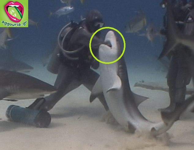 Δείτε την στιγμή που ο δύτης βάζει το χέρι του στο στόμα του καρχαρία για να βγάλει ένα γάντζο αλιείας