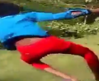 Ο νεαρός (μάλλον Ινδός) όπως βλέπετε στο βίντεο, βρήκε παιχνίδι να κρεμιέται στο κενό κρατώντας μόνο μια χειρολαβή και έχοντας το ένα του πόδι έξω.