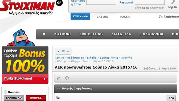 Μπείτε στην παρακάτω διεύθυνση Stoiximan.gr/AEK-prwtathlitria-Souper-Liga-2015-16 και πράξτε όπως επιθυμείτε.