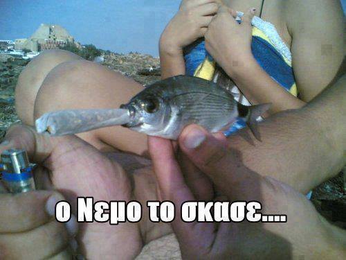 και του έβαλαν το τσιγαριλίκι στο στόμα. Στην φωτογραφία έγραψαν επάνω ο Νέμο το σκάσε...