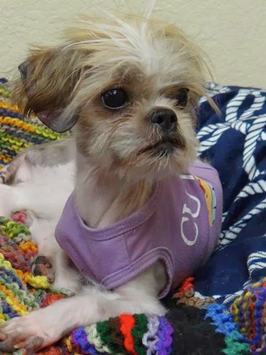 Η 3χρονη σκυλίτσα ζύγιζε μόνο 1.8 κιλά, λιγότερο από το μισό από αυτό που θα έπρεπε να ζυγίζει, και επειδή τα όργανά της υπολειτουργούσαν, της τοποθέτησαν οξυγόνο και ένα σωλήνα σίτισης για εννέα ημέρες. ΗΠίστη ήταν τόσο αδύναμη που δεν μπορούσε καν να σηκώσει το κεφάλι της. Όταν την ξύρισαν όμως, κούνησε την ουρίτσα της!